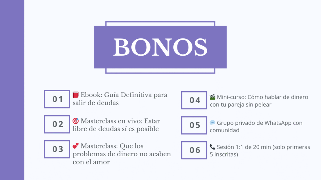 Este taller es 100% online. Aprenderás a construir un sistema de administración del dinero para tu vida, A definir tus metas financieras, conocer tu dinámica financiera, a realizar un presupuesto, a llevar un control del gasto y lo más importante desarrollarás hábitos financieros saludables que te ayudarán para lograr tus sueños.
