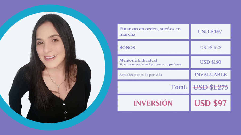 Finanzas en orden, sueños en marcha es un programa para mujeres que quieren empezar a adquirir hábitos financieros sanos. Sin necesidad de ganar más, sino enfocando sus finanzas de manera consciente.
